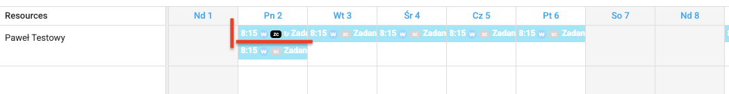 Klikając w napis otwieramy zadanie cykliczne, do którego przynależy podzadanie cykliczne.