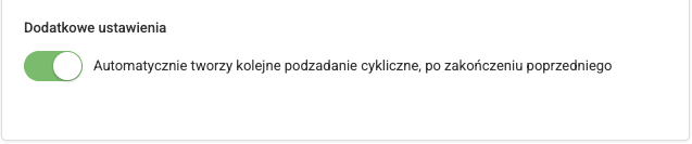 Po włączeniu chckboksa aktywuje się funkcja polegająca na tym, że system z danego cyklu przydziela tylko piersze zadanie do terminarza, modułu zadania i aplikacji mobilnej pracownika. Kolejne zadani zostani dodane do systemu po zakończeniu tego pierwszego zadania. Oczywiście zadanie dodawane są w zdefiniowymi cyklu zadania cyklicznego.